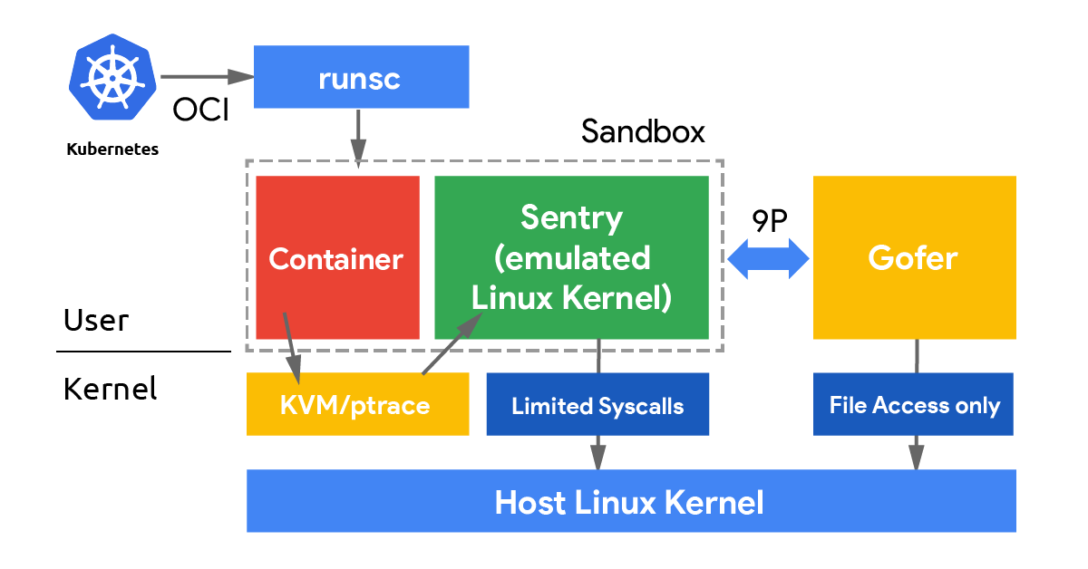 gVisor, quoting the official documentation, is an application kernel that provides an additional layer of isolation between running applications and the host operating system. It delivers an additional security boundary for containers by intercepting and monitoring workload runtime instructions in user space before they can reach the underlying host.